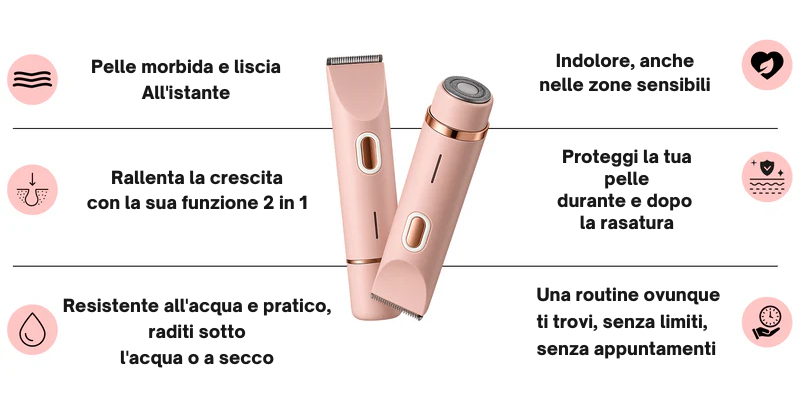 Grazie alla doppia testina tagliacapelli/rasoio, offre un'esperienza senza irritazioni né arrossamenti.